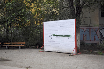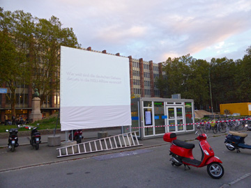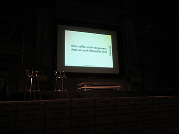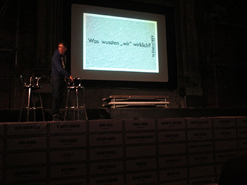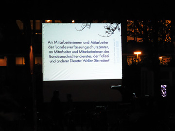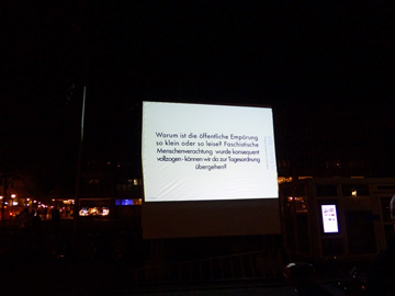Projektion der Fragen im Zusammenhang mit der Auftaktveranstaltung| PR Kampagne zum NSU-Tribunal